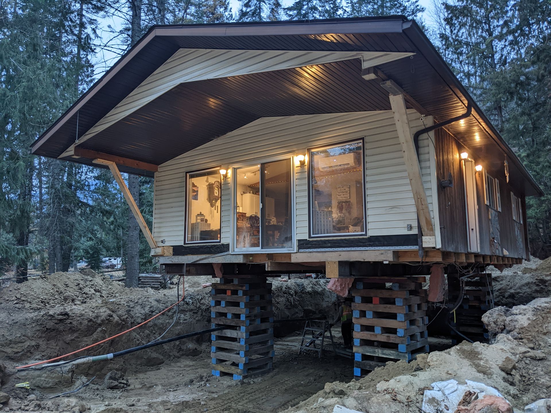 Our home had originally been 860 square feet, but in the fall of 2022 we had it taken off its foundation and dug a basement underneath while also closing in the 8 foot covered deck that was at the front of the house.